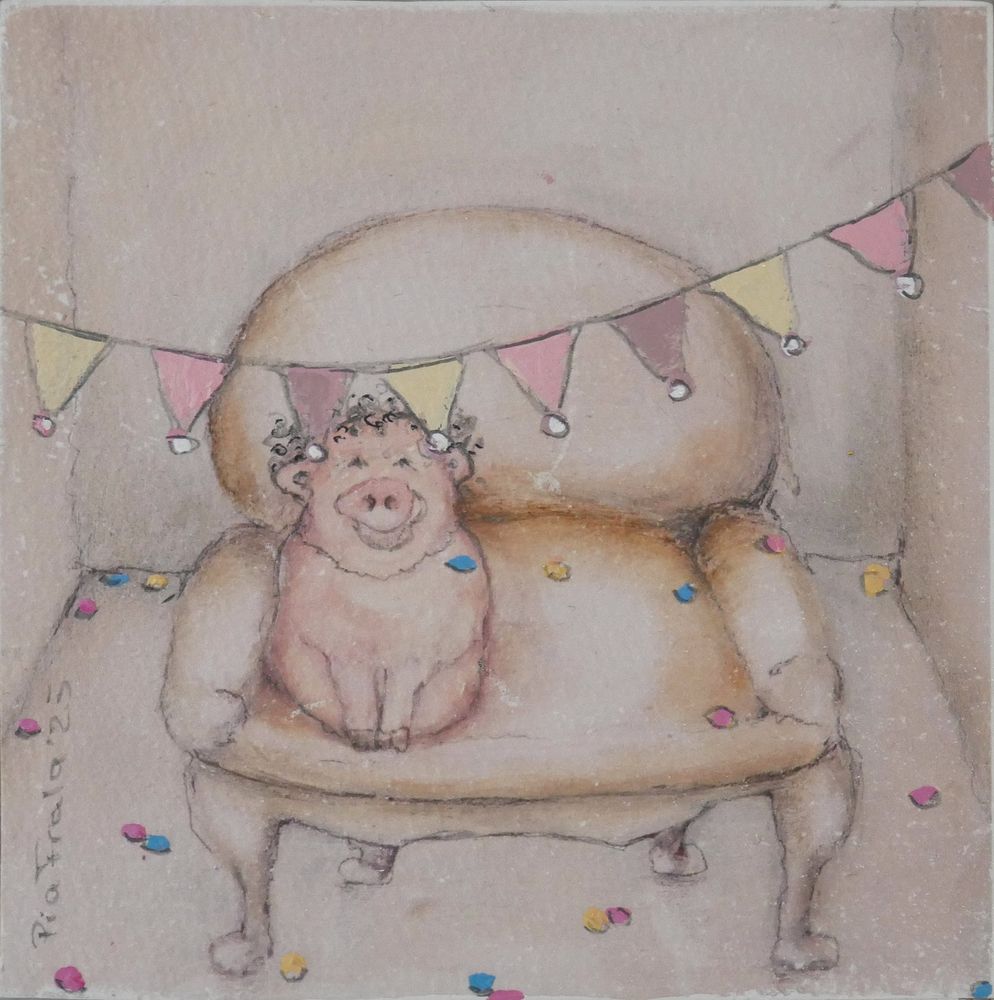 Pia Frala15x15cm99,00 € - Produktdetails für Schweinchen mit Blumenkranz ansehen