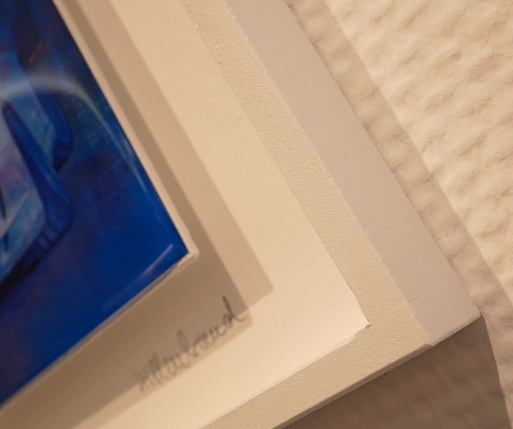 „Mini Porsche blue“ von Ute Hillenbrand ist ein exklusiver, handsignierter Kunstdruck im Format 25 x 25 cm. Die Künstlerin kombiniert detailreiche Pop Art mit einer glänzenden Epoxy-Oberfläche und veredelt das Werk durch einen von ihr selbst gefertigten Holzrahmen mit Glitzereffekt. Die limitierte Auflage von nur 9 Exemplaren macht dieses Werk zu einem begehrten Sammlerstück für Auto- und Kunstliebhaber.