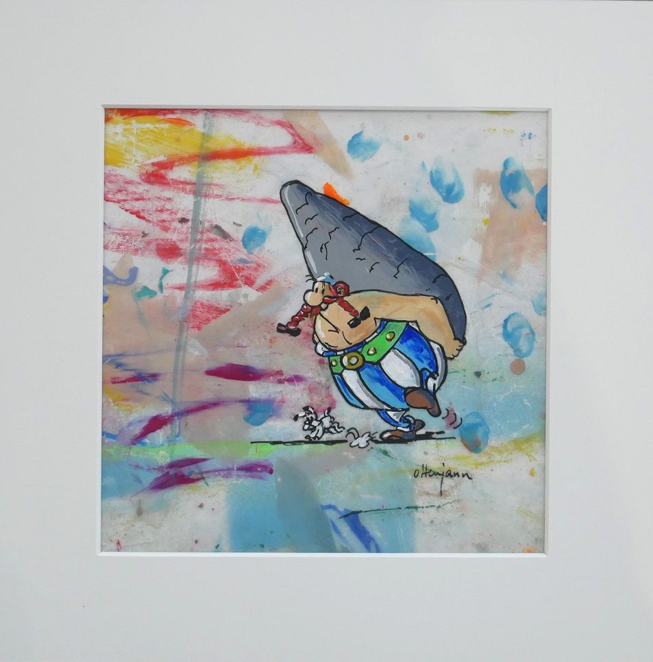 Obelix, der legendäre Gallier aus der beliebten Comicreihe, wird von Andrea Ottenjann in einer einzigartigen Mixed-Media-Arbeit lebendig. Das Original misst 30 x 30 cm (Motiv 20 x 20 cm) und besticht durch Acryl auf Folie, beidseitig bemalt und handsigniert. Mit liebevollen Details und kräftigen Farben bringt die Künstlerin Obelix und seinen treuen Hund Idefix kunstvoll zur Geltung – ein echtes Unikat für Comic-Liebhaber.