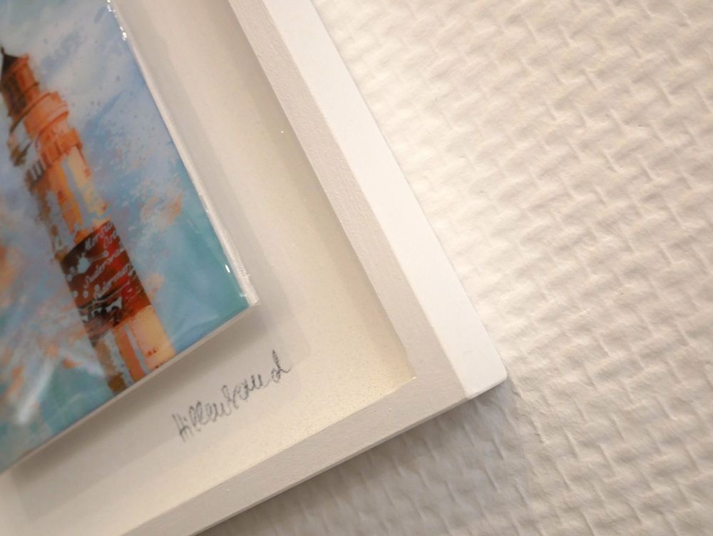 Der „Mini Kampenturm BEIGE“ von Ute Hillenbrand ist ein limitiertes Kunstwerk, das Sylter Inselliebe und maritimes Flair vereint. Der hochwertige Kunstdruck (15 x 15 cm) wurde mit Epoxy veredelt und in einen von der Künstlerin handgefertigten, glitzernden Holzrahmen (25 x 25 cm) eingefasst. Jedes der nur 9 Exemplare ist handsigniert und bringt mit seinem glänzenden Finish einen Hauch von Sylt in Ihr Zuhause.