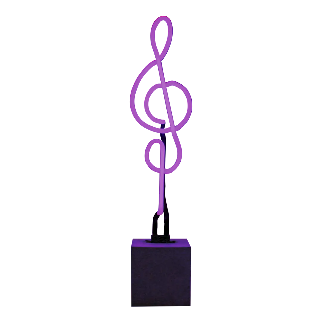 Das Lichtobjekt 'Notenschlüssel' von Lichtobjekte by Locomocean bringt musikalisches Flair in jeden Raum. Die filigrane Form aus Neonglas leuchtet in intensivem Violett und wird von einem robusten Betonsockel getragen. Mit einer Höhe von 46 cm und einer Breite von 12 cm ist dieses Designstück ein echter Blickfang – ideal als Geschenk für Musikliebhaber oder als stilvolle Dekoration für moderne Wohnräume.