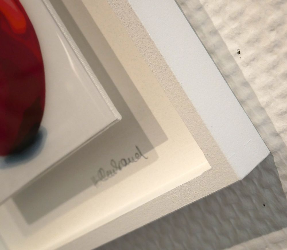 Mit „Mini Veggies Tomato“ bringt Ute Hillenbrand eine leuchtend rote Tomate auf 25 x 25 cm zum Strahlen. Der limitierte Kunstdruck (nur 9 Exemplare, handsigniert) überzeugt durch brillante Farben und einen glänzenden Epoxidharz-Überzug. Der von der Künstlerin selbst gefertigte Holzrahmen mit Glitzereffekt macht das Werk zu einem echten Blickfang – perfekt für Liebhaber moderner, dekorativer Kunst mit einem Augenzwinkern.