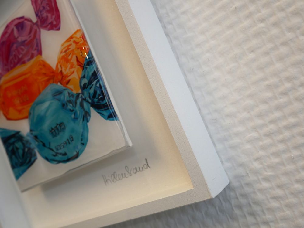 „Mini Candy“ von Ute Hillenbrand ist ein limitiertes Kunstwerk im Format 25 x 25 cm, das mit leuchtenden Farben und glitzerndem Epoxy-Finish begeistert. Der hochwertige Kunstdruck ist auf 9 Exemplare limitiert, handsigniert und wird von einem von der Künstlerin selbst gestalteten, glitzernden Holzrahmen vollendet. Das Werk verbindet Pop Art mit einem Hauch von Luxus und ist ein echter Blickfang – perfekt als Geschenk oder stilvolles Highlight für Ihr Zuhause.
