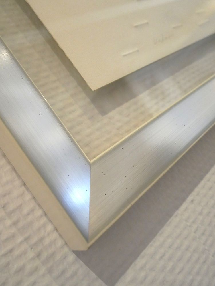 Dieses beeindruckende Werk von Günther Uecker besticht durch seine einzigartige Prägedruck-Technik. Das handsignierte Original misst 69 x 69 cm und wird in einer hochwertigen, konservatorischen Rahmung präsentiert. Die freischwebende Anordnung zwischen Doppelglas unterstreicht die besondere Wirkung der reliefartigen Struktur und macht das Kunstwerk zu einem faszinierenden Blickfang moderner, zeitgenössischer Kunst.