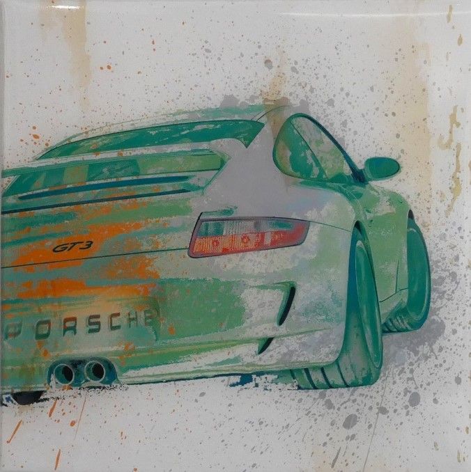 Der „Mini Porsche GRÜN“ von Ute Hillenbrand bringt automobile Eleganz im Kleinformat an Ihre Wand. Das 25 x 25 cm große Kunstwerk ist ein limitierter, handsignierter Print (Auflage 9), mit Epoxy veredelt und von der Künstlerin selbst gerahmt. Der weiße Holzrahmen mit Glitzereffekt unterstreicht die dynamische Darstellung des grünen Porsche GT3 und macht das Werk zu einem exklusiven Blickfang – perfekt für Liebhaber von Pop Art und Automobilen.