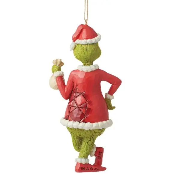Der von Jim Shore gestaltete Anhänger „Grinch mit einem Beutel Kohle“ bringt augenzwinkernden Charme an Ihren Weihnachtsbaum. Die 13 cm hohe und detailreich aus Polyresin gefertigte Figur zeigt den berühmten Grinch in festlicher Pose mit seinem typischen verschmitzten Blick. Perfekt als origineller Weihnachtsschmuck oder als Geschenk für Fans des kultigen Charakters – ein Highlight für jede festliche Dekoration.